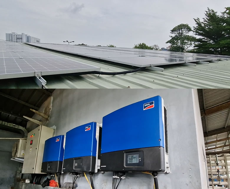 In 2022, WTP Pluit implements a solar panel and inverter system to produce clean energy and utilize it as auxiliary power source for non-critical devices, to balance power consumption, and to monitor the performance of the plant and optimize its operation and efficiency.